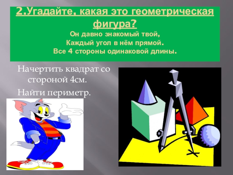 Начертить квадрат со стороной 4см.