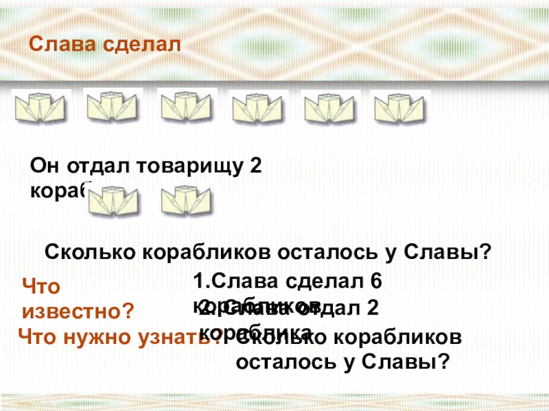 1.Слава сделал 6 корабликов