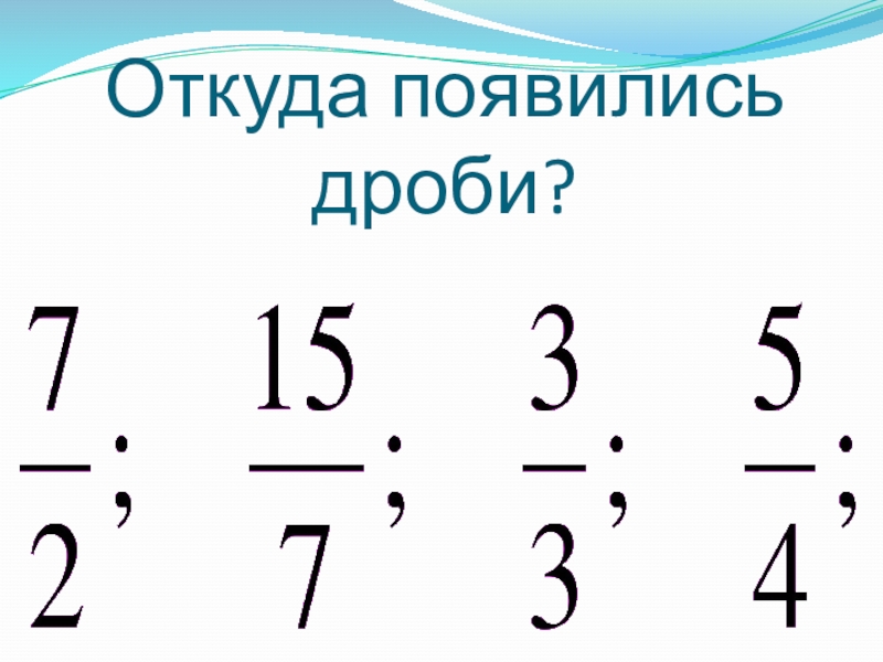 натуральных чисел. Появление дробей связывается с необходимостью решать задачи, где нужно было производить деление на равные части.