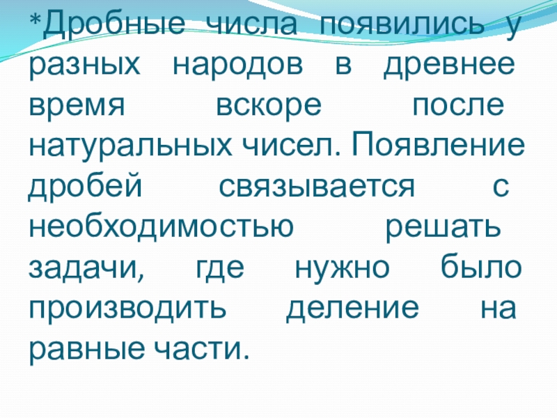 Слайд 3*Дробные числа появились у разных народов в древнее время вскоре после