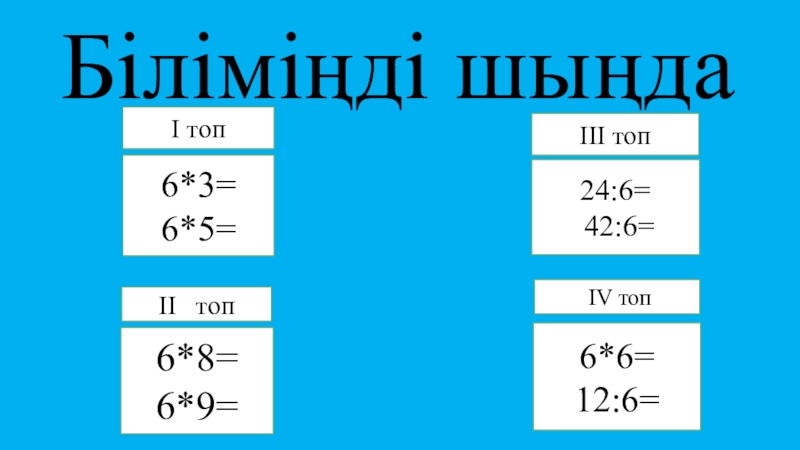 Біліміңді шыңда6*3=6*5=6*8=6*9= 6*6= 12:6=24:6= 42:6= І топ ІІІ топ ІV топІІ  топ