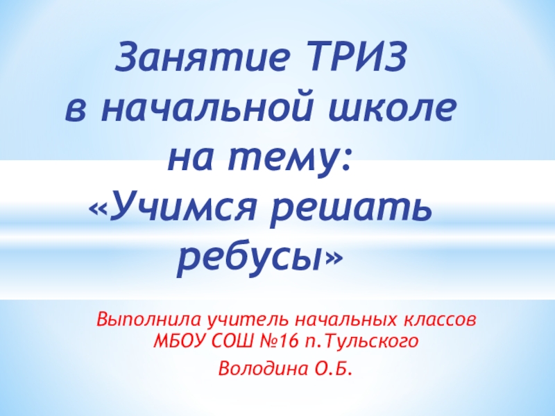 «Учимся решать ребусы»
