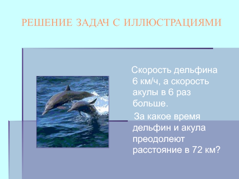 За какое время дельфин и акула преодолеют расстояние в 72 км?