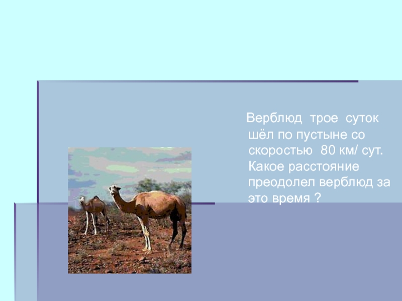 км/ сут. Какое расстояние преодолел верблюд за это время ?