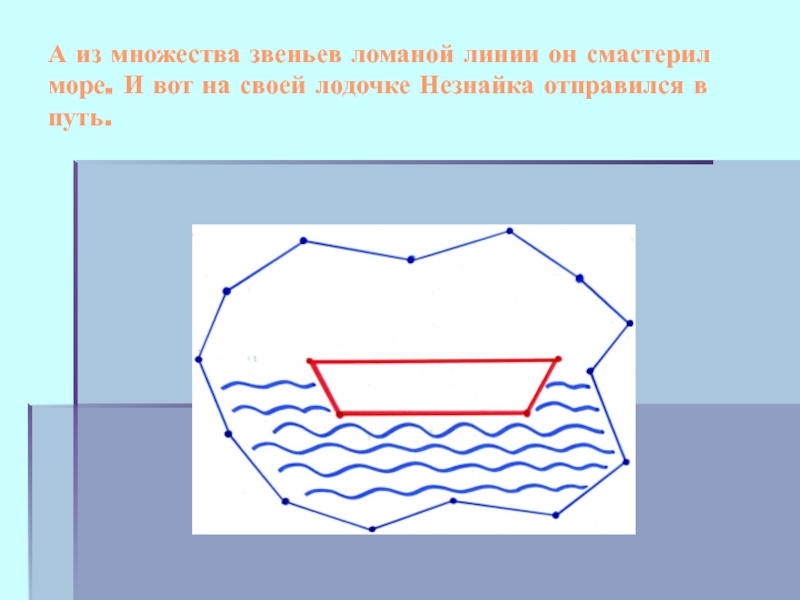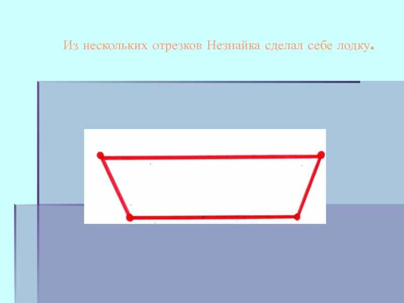 Слайд 14 Из нескольких отрезков Незнайка сделал себе лодку.