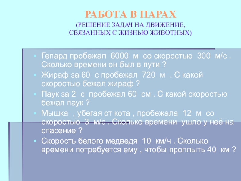 совершенствовать вычислительные навыки и навыки решения задач на нахождение скорости, времени, расстояния;