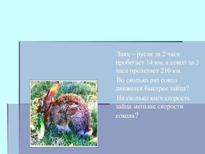 На сколько км/ч скорость зайца меньше скорости сокола?