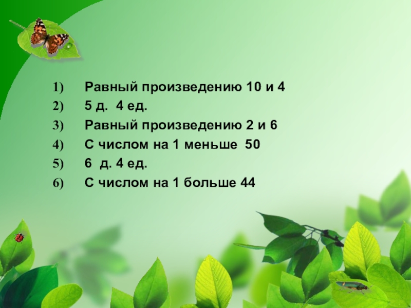 Слайд 19Равный произведению 10 и 4