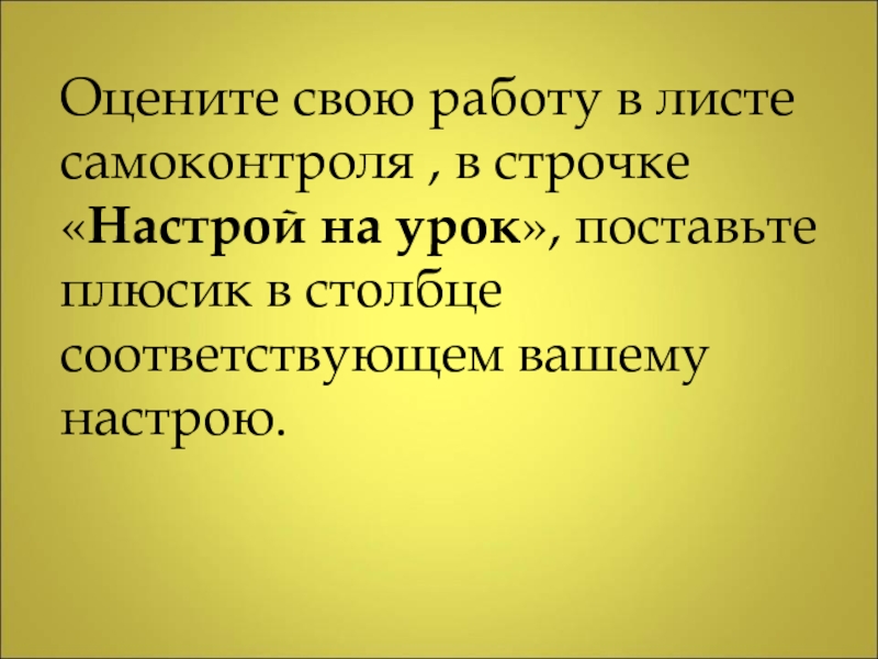 Оцените свою работу в листе самоконтроля , в строчке «Настрой на