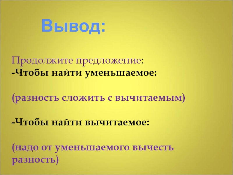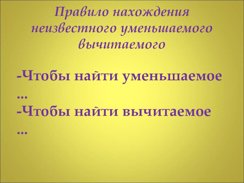 Слайд 21Правило нахождения неизвестного уменьшаемого вычитаемого