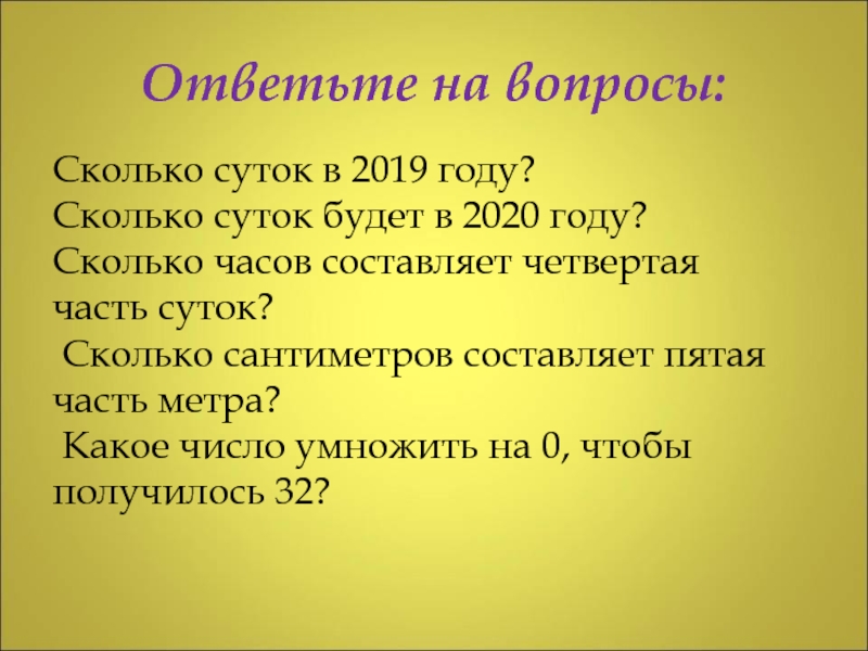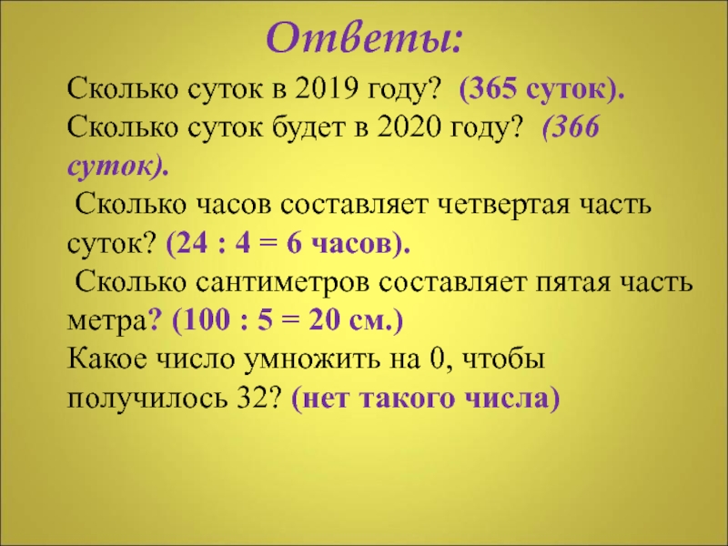 Сколько часов составляет четвертая часть суток? (24 : 4 = 6 часов).