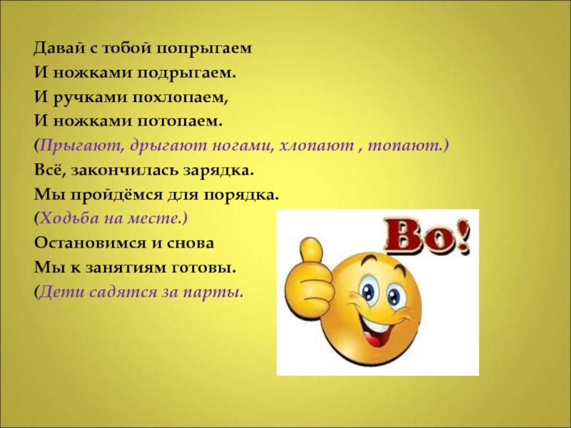 (Прыгают, дрыгают ногами, хлопают , топают.)