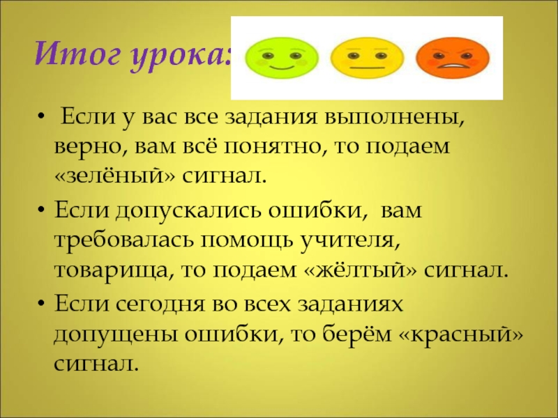 Если допускались ошибки, вам требовалась помощь учителя, товарища, то подаем «жёлтый» сигнал.