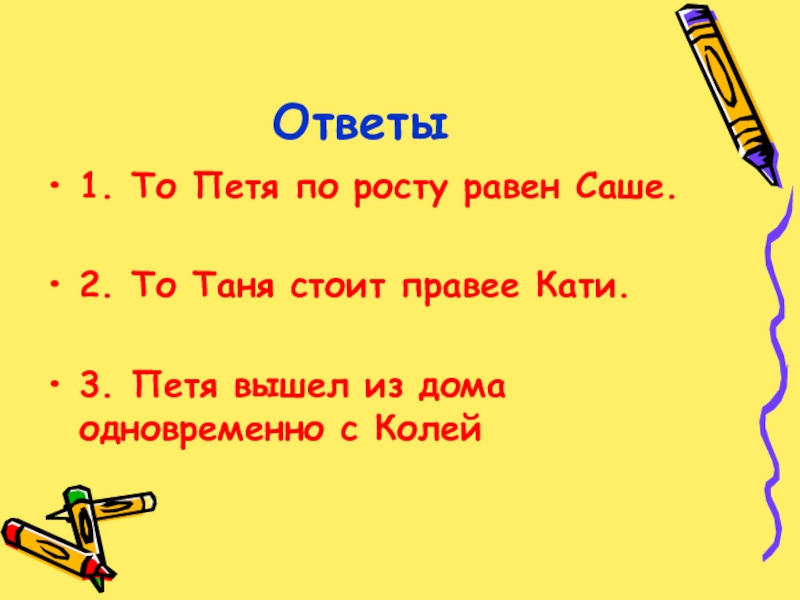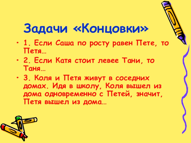 3. Коля и Петя живут в соседних домах. Идя в школу, Коля вышел из дома одновременно с Петей, значит, Петя вышел из дома…