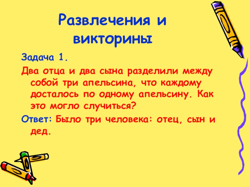 три апельсина, что каждому досталось по одному апельсину. Как это могло случиться?