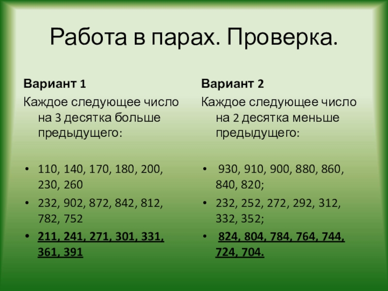 Каждое следующее число на 2 десятка меньше предыдущего: