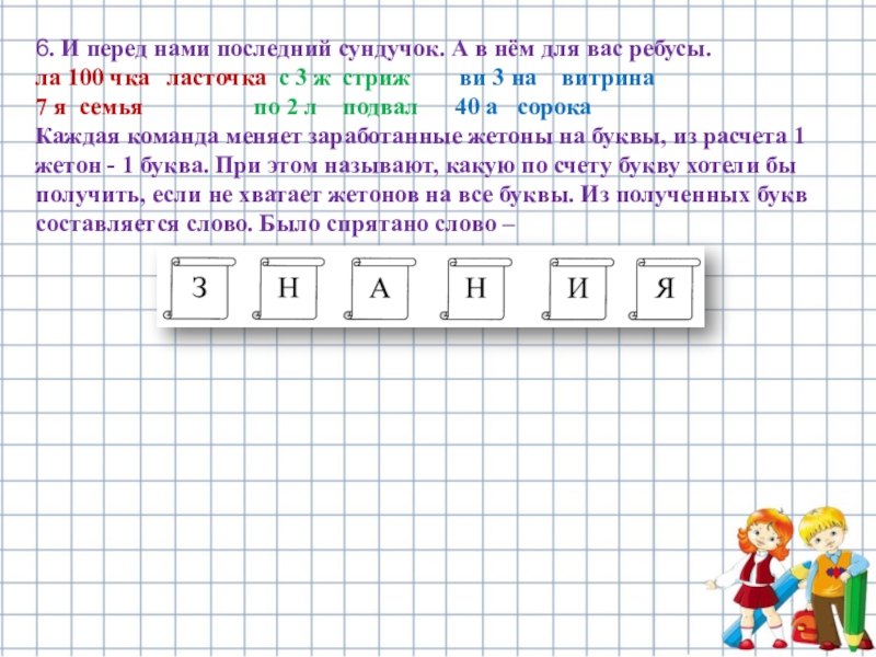 -Чтобы достать букву из сундука, надо вставить пропущенные числа на веточках.