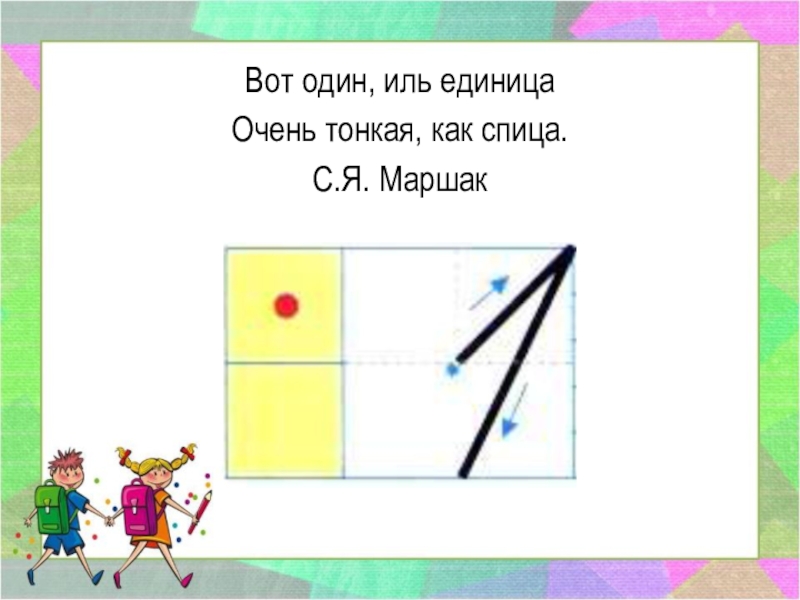Вот один, иль единицаОчень тонкая, как спица.С.Я. Маршак