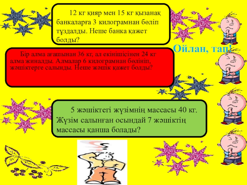 5 жәшіктегі жүзімнің массасы 40 кг. Жүзім салынған осындай 7 жәшіктің массасы қанша болады?
