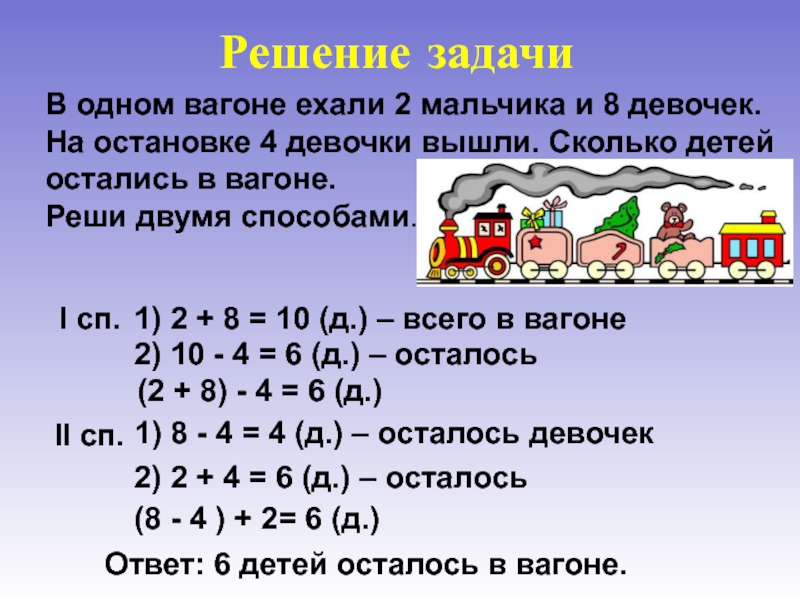 1) 2 + 8 = 10 (д.) – всего в вагоне