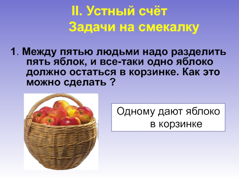 Одному дают яблоко в корзинке