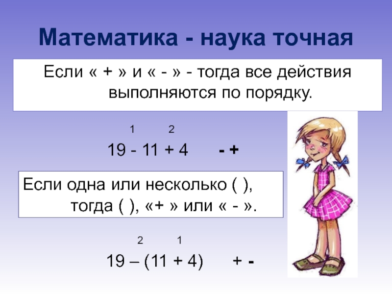 тогда ( ), «+ » или « - ».