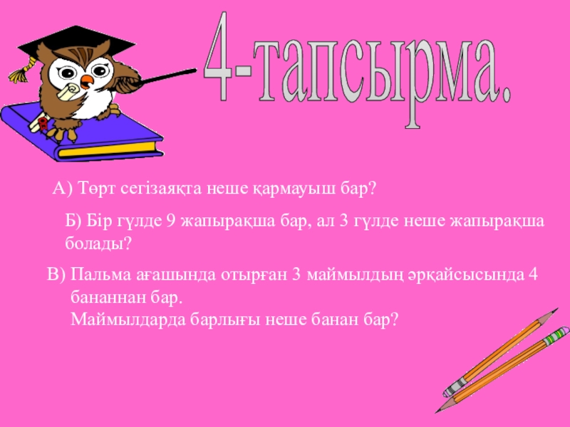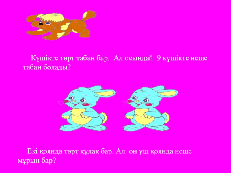 Күшікте төрт табан бар. Ал осындай 9 күшікте неше табан болады?