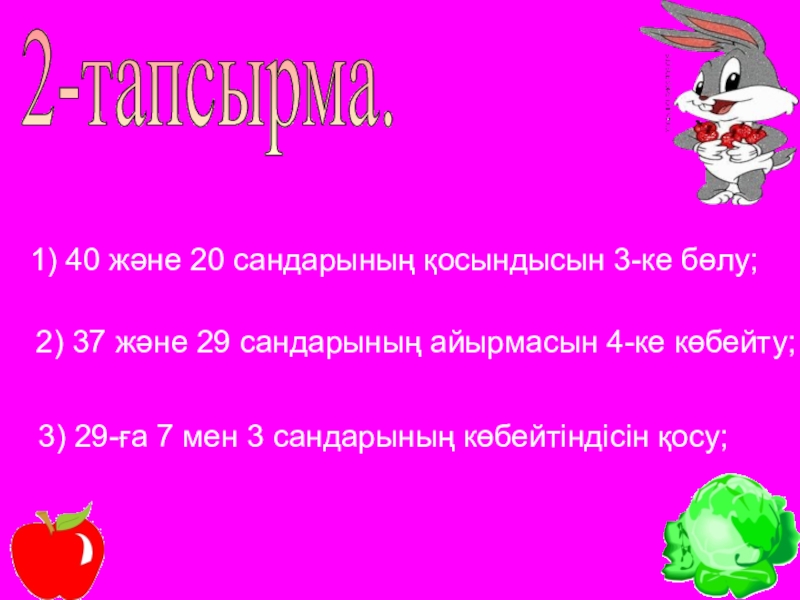 3) 29-ға 7 мен 3 сандарының көбейтіндісін қосу;