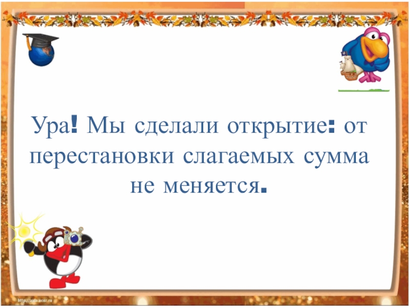 Это сайт презентаций, где можно хранить и обмениваться своими презентациями, докладами, проектами, шаблонами в формате PowerPoint с другими пользователями. Мы помогаем школьникам, студентам, учителям, преподавателям хранить и обмениваться учебными материалами.