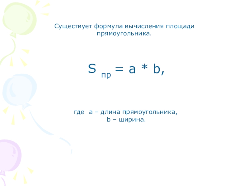 Слайд 6Существует формула вычисления площади прямоугольника.