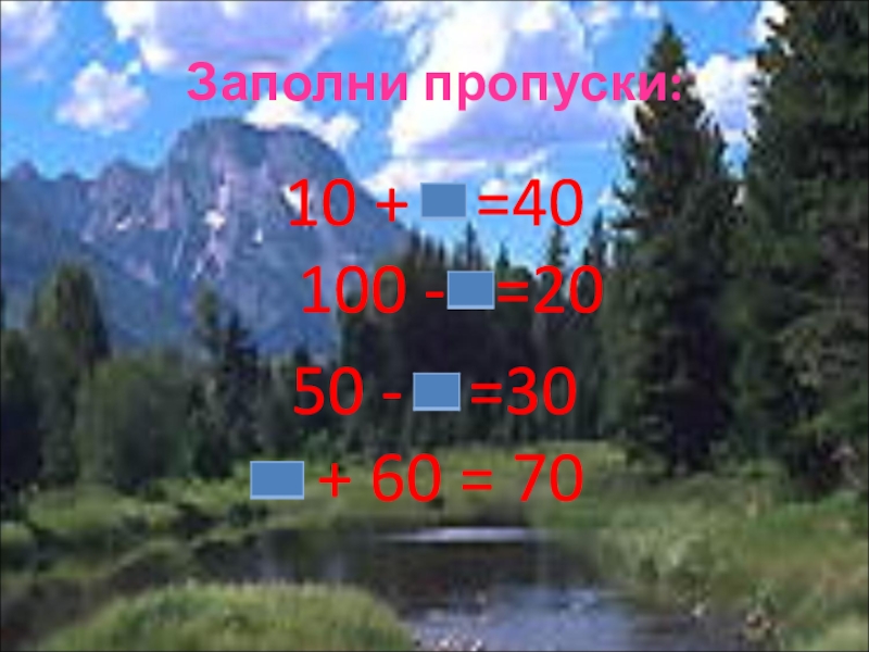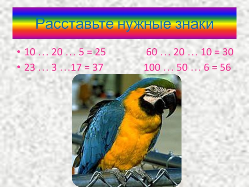 Расставьте нужные знаки10 … 20 … 5 = 25        60