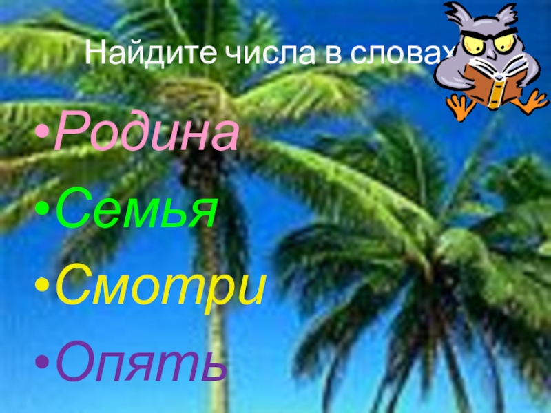 Найдите числа в словах:РодинаСемьяСмотриОпять