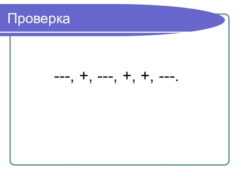 Проверка    ---, +, ---, +, +, ---.