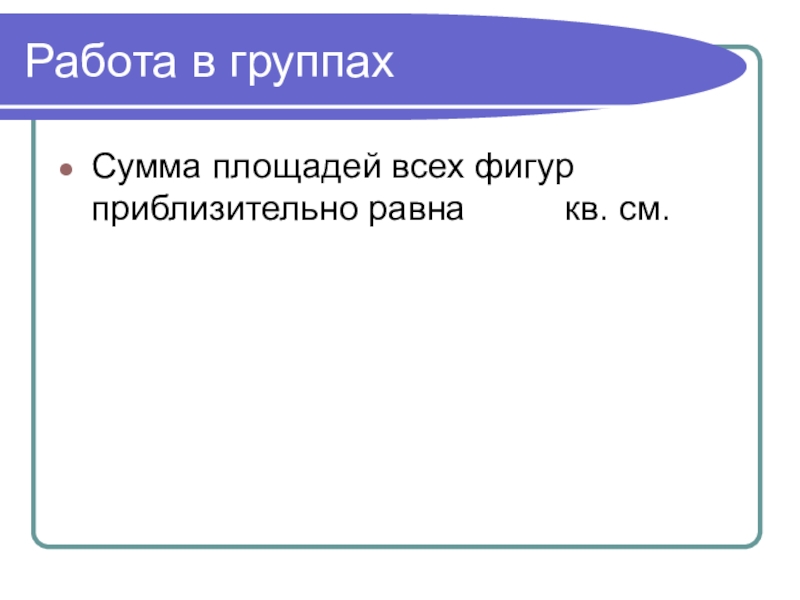 Работа в группахСумма площадей всех фигур приблизительно равна     кв. см.