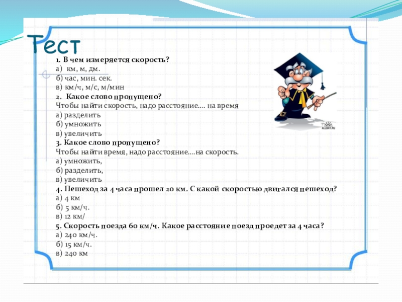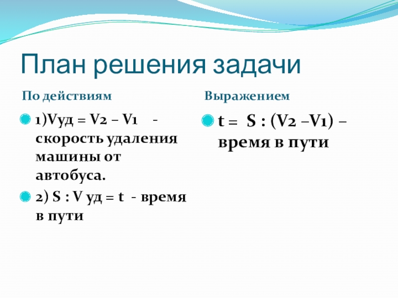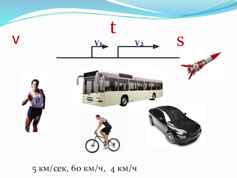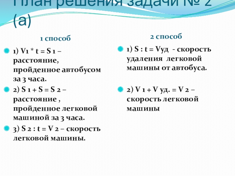 1) S : t = Vуд - скорость удаления легковой машины от автобуса.