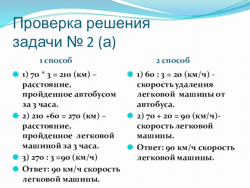 2) 70 + 20 = 90 (км/ч)- скорость легковой машины.