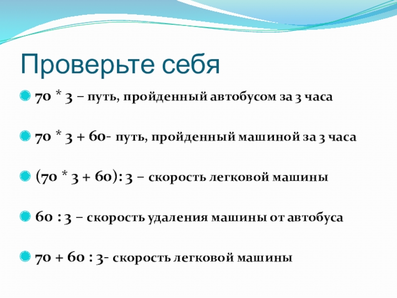 1) 70 * 3 = 210 (км) – расстояние, пройденное автобусом за 3 часа.