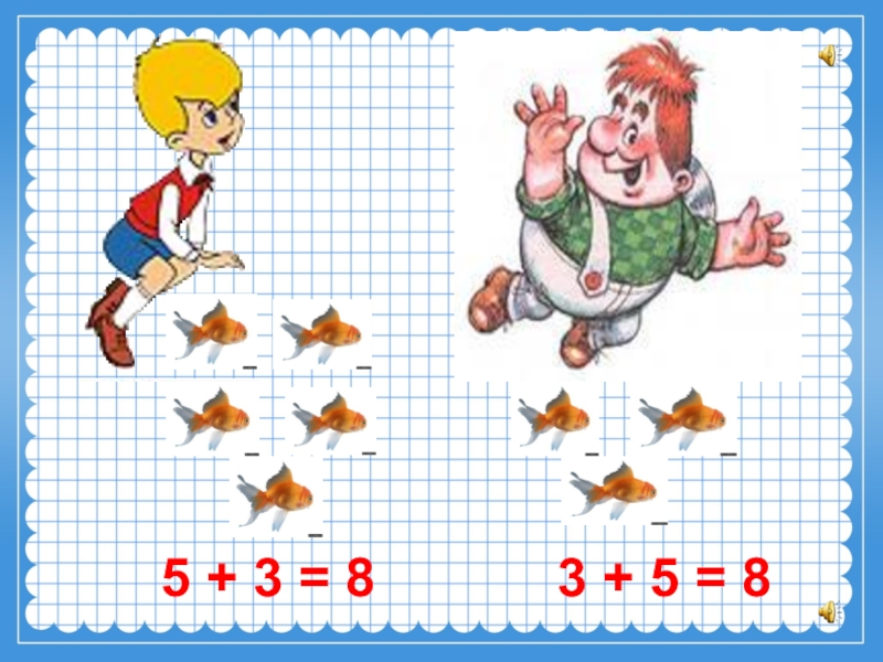 Слайд 4 5 + 3 = 8