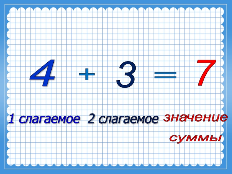 4 + 3 = 7 1 слагаемое 2 слагаемое