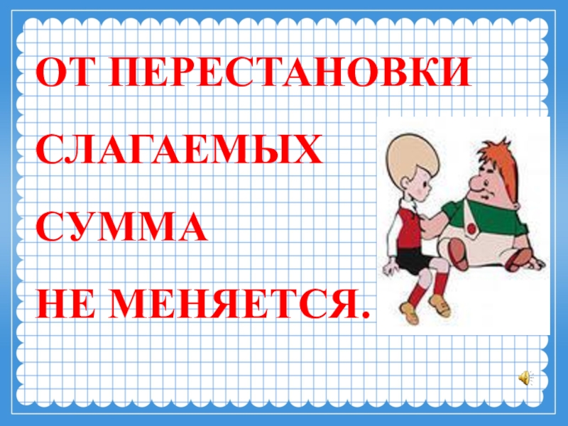 Слайд 7ОТ ПЕРЕСТАНОВКИ СЛАГАЕМЫХ СУММА НЕ МЕНЯЕТСЯ.