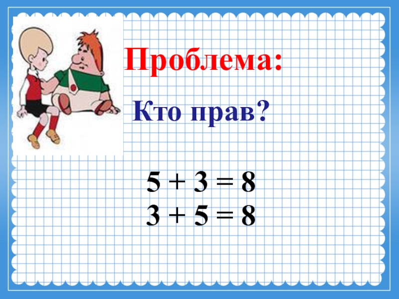 Проблема:   Кто прав? 5 + 3 = 8 3 + 5 =