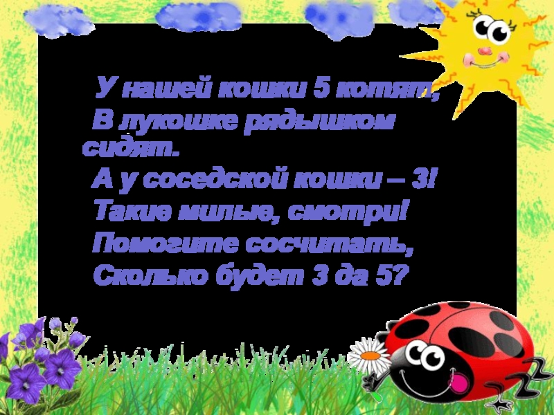 У нашей кошки 5 котят,  В лукошке рядышком    сидят.