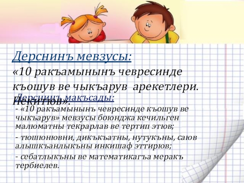 «10 ракъамынынъ чевресинде къошув ве чыкъарув арекетлери. Пекитюв».