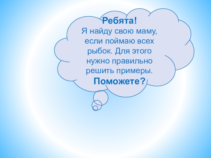Ребята!Я найду свою маму, если поймаю всех рыбок. Для этого нужно правильно решить примеры.Поможете?