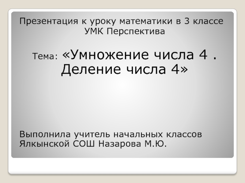 Выполнила учитель начальных классов Ялкынской СОШ Назарова М.Ю.