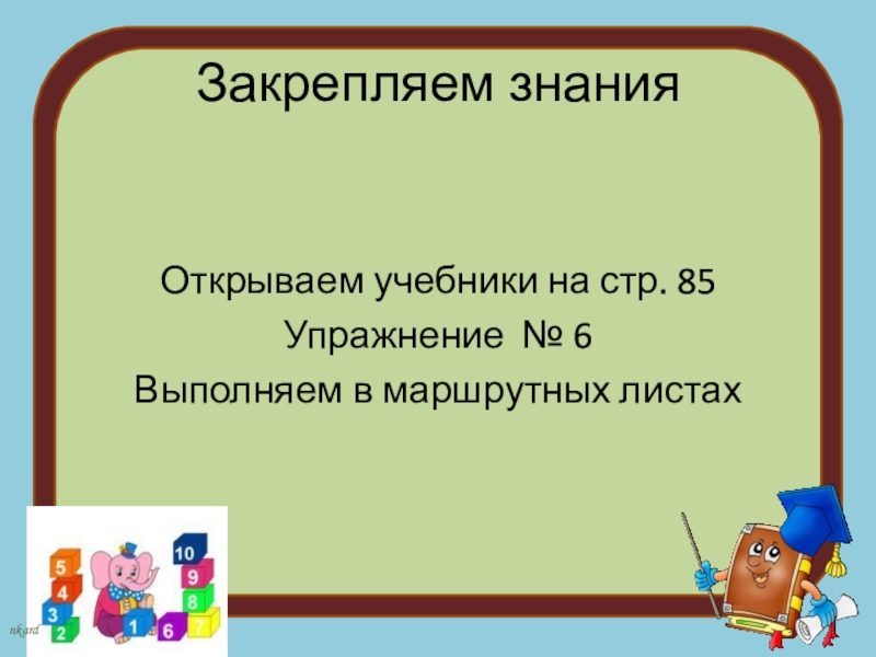 Закрепляем знанияОткрываем учебники на стр. 85Упражнение № 6Выполняем в маршрутных листах