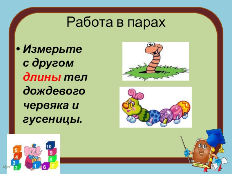 Измерьте с другом длины тел дождевого червяка и гусеницы.