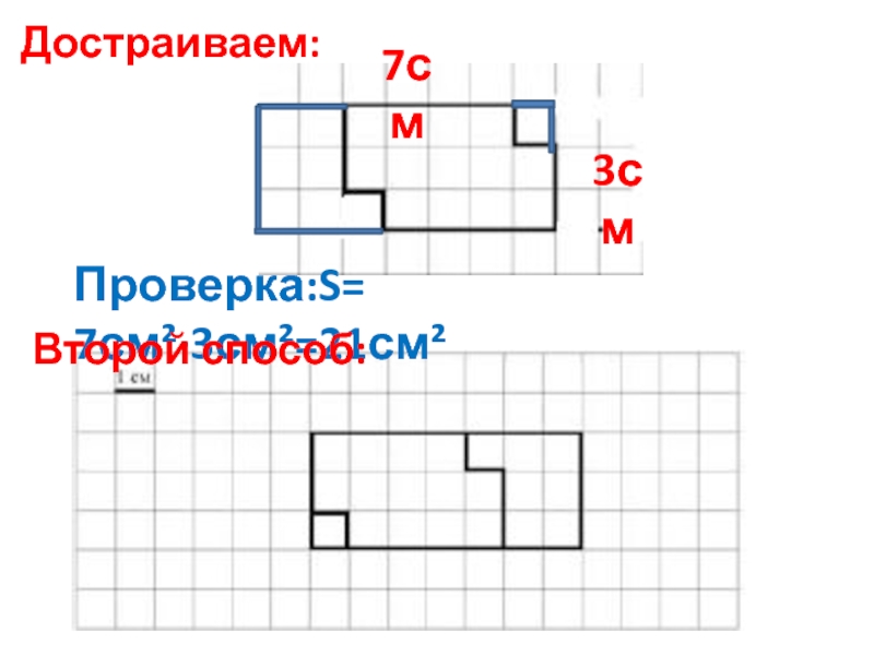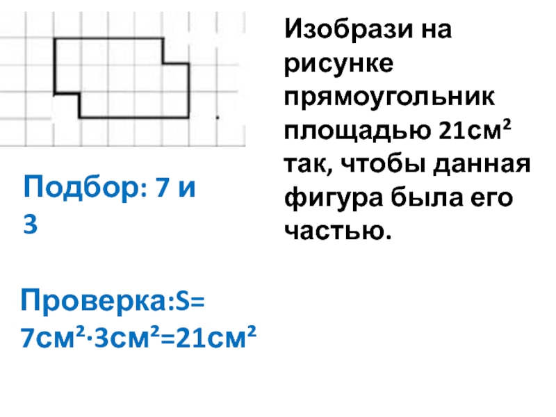 Проверка:S= 7см²·3см²=21см²