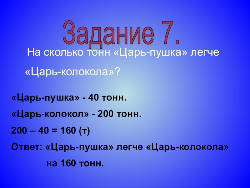 Ответ: «Царь-пушка» легче «Царь-колокола»