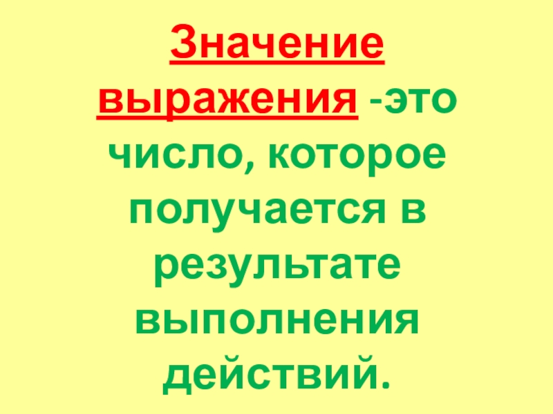 Значение выражения -это число, которое получается в результате выполнения действий.